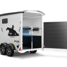 - Abschließbare Sattelkammer mit ausziehbarem Sattelhalter, Trensenhalter, Spiegel, Netz, Innenbeleuchtung, Schaufel und Besen