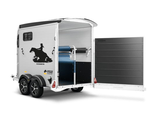 Die Western-Ausführung des AREION Pro lässt die Herzen aller Westernreiter höher schlagen! Die Western Edition ist mit dem passendem Westernmotiv-Decal auf den Seitenwänden nicht nur ein optisches Highlight. Obendrauf ist der ausziehbare Sattelhalter speziell auf Westernsattel angepasst.