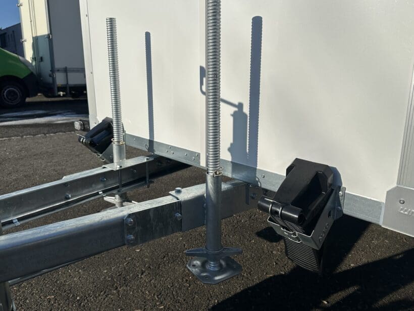 4 Schwerlaststützen, Kotflügel Stahl verzinkt, Beleuchtung 12 Volt, versenkt im Unterfahrschutz eingebaut. Stecker 13-pol.