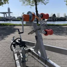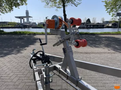 Die Windenstand und die Bugstütze können einfach in Länge und Höhe verstellt werden. Die Kiel- und Kim-Rollen, auf denen sich Ihr Boot befindet, können auch in der Höhe und / oder in Längsrichtung bewegt werden. Die automatisch gebremste Luxus-Sicherheitshandwinde ist serienmäßig mit einem soliden Windengurt ausgestattet.