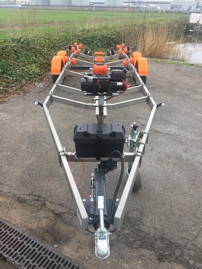 Durch die Verwendung von Edelstahl statt feuerverzinkten Stahls haben die Vanclaes Anhänger den Vorteil, dass sie mit einem oft noch stärkeren und robusteren Fahrgestell viel leichter sind. So, neben den enormen qualitativen und ästhetischen Vorteilen von dieses viel luxuriöseren und schöneren Materiale, bedeutet das auch eine Gewichtsersparnis von +/- 25%, was zu einer höheren Tragfähigkeit und mehr Möglichkeiten für die Anwendung von feiner und praktischer Optionen führt, die Sie bei fahren und auf der Slipanlage helfen.