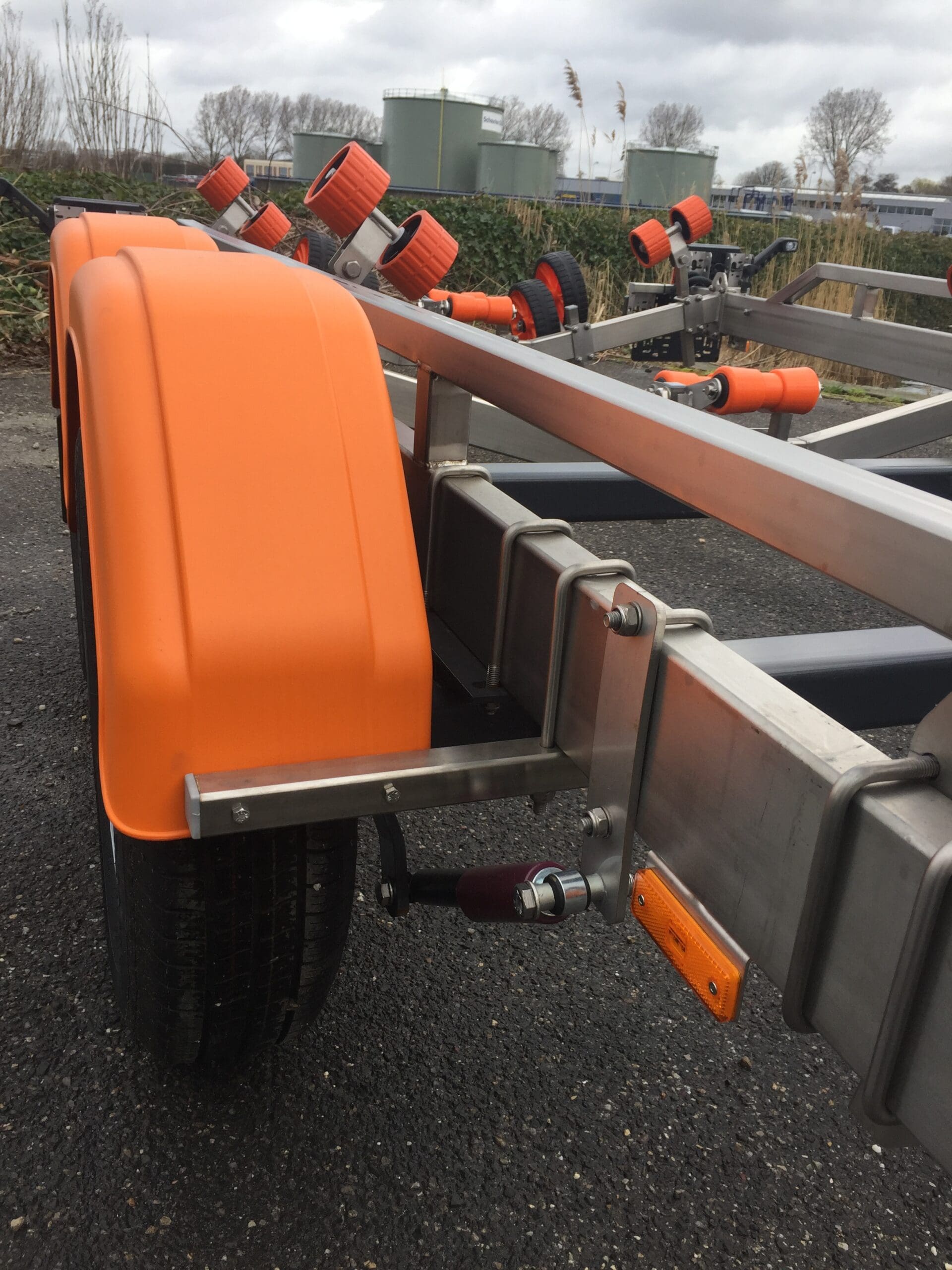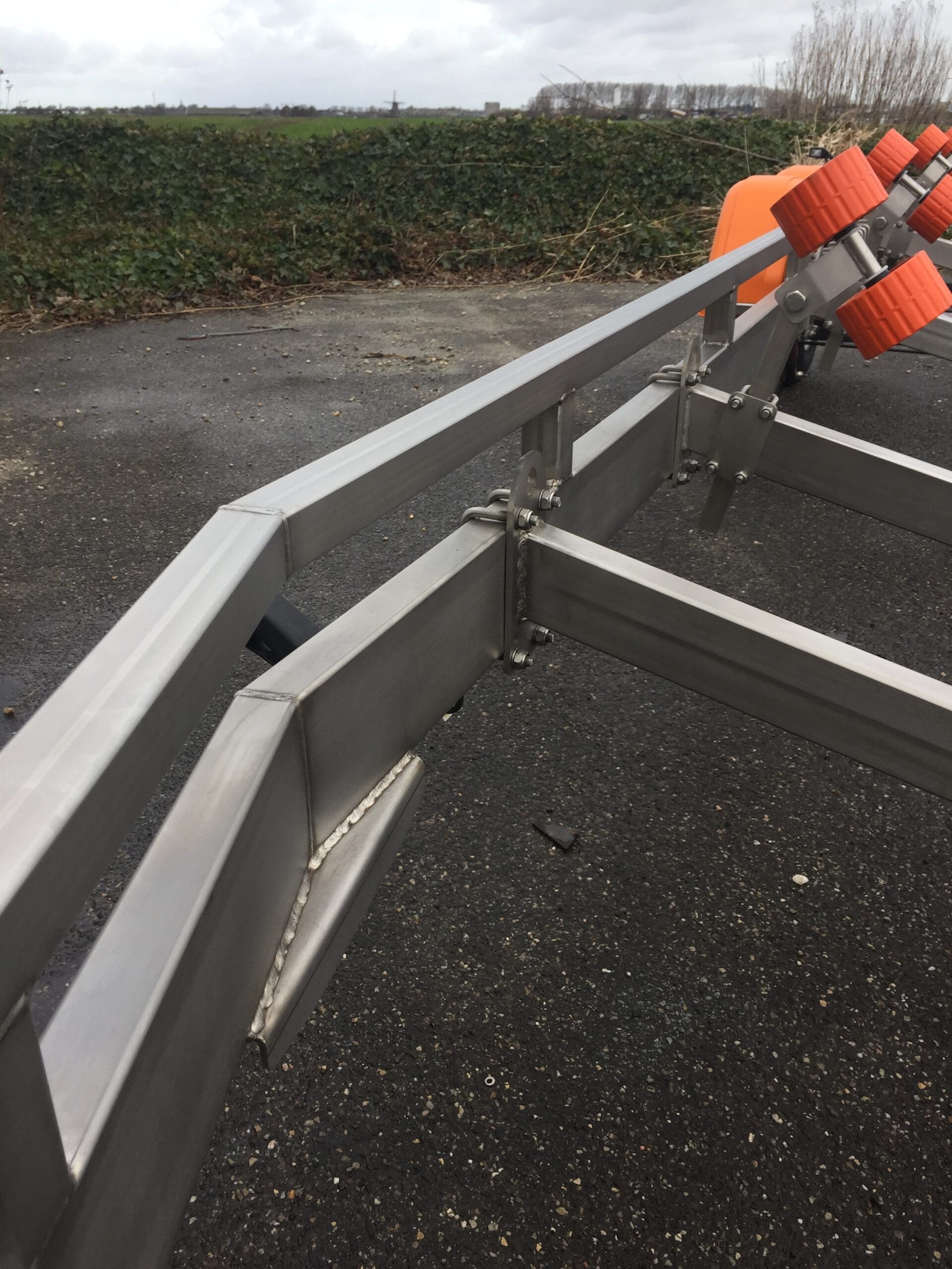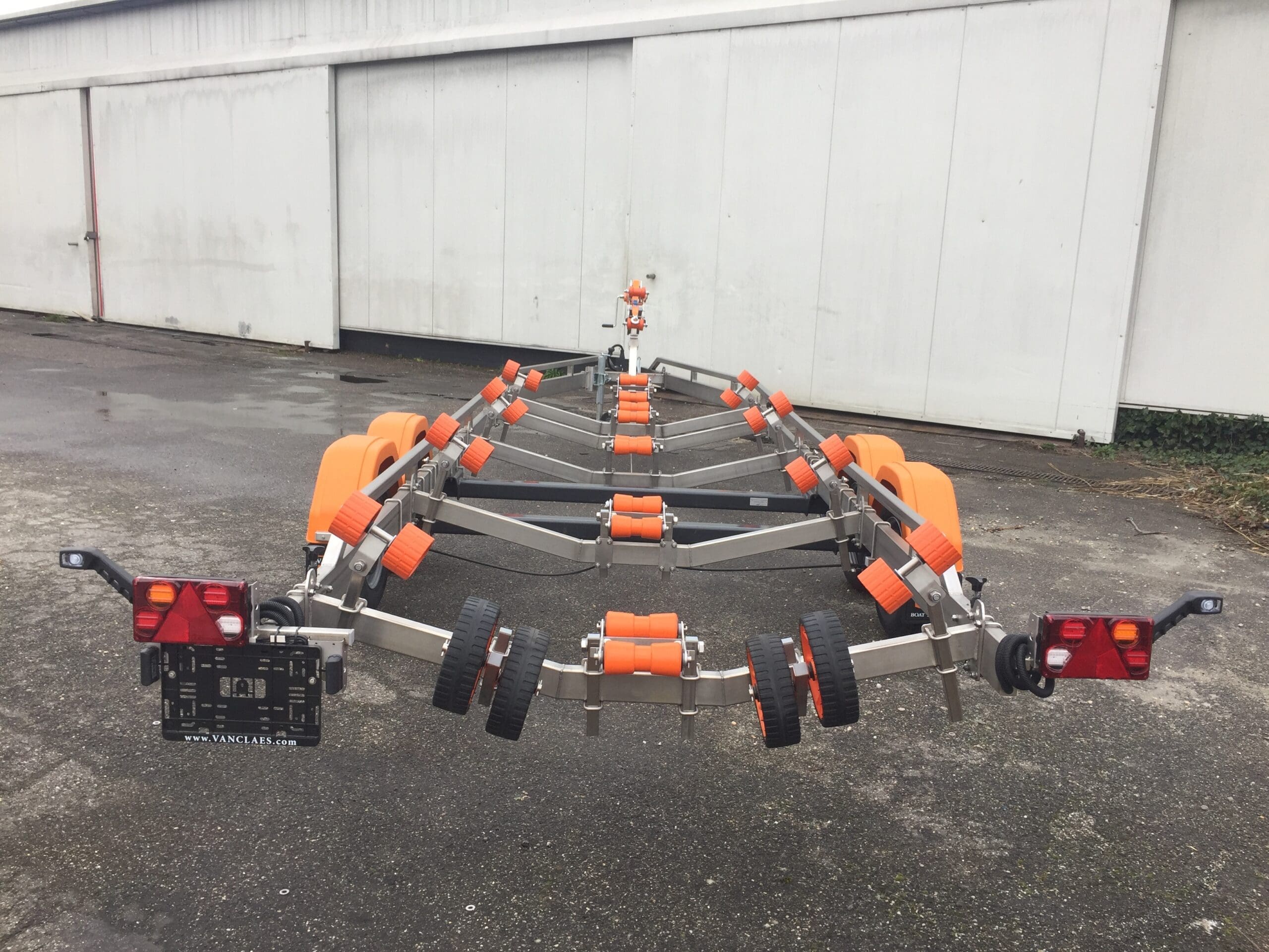 Durch die Verwendung von Edelstahl statt feuerverzinkten Stahls haben die Vanclaes Anhänger den Vorteil, dass sie mit einem oft noch stärkeren und robusteren Fahrgestell viel leichter sind. So, neben den enormen qualitativen und ästhetischen Vorteilen von dieses viel luxuriöseren und schöneren Materiale, bedeutet das auch eine Gewichtsersparnis von +/- 25%, was zu einer höheren Tragfähigkeit und mehr Möglichkeiten für die Anwendung von feiner und praktischer Optionen führt, die Sie bei fahren und auf der Slipanlage helfen.