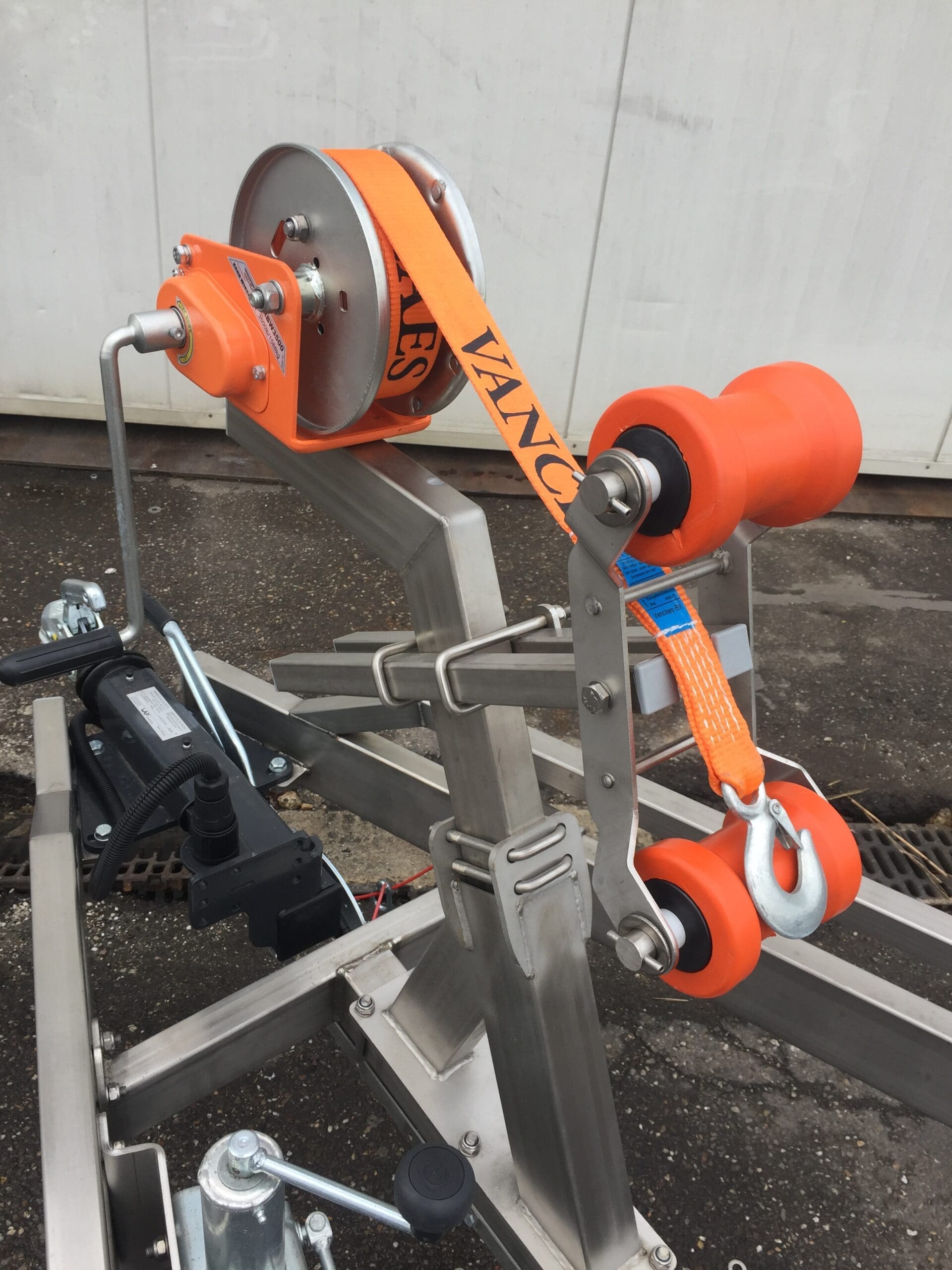 Die Windenstand und die Bugstütze können einfach in Länge und Höhe verstellt werden. Die Kiel- und Kim-Rollen, auf denen sich Ihr Boot befindet, können auch in der Höhe und / oder in Längsrichtung bewegt werden. Die automatisch gebremste Luxus-Sicherheitshandwinde ist serienmäßig mit einem soliden Windengurt ausgestattet.