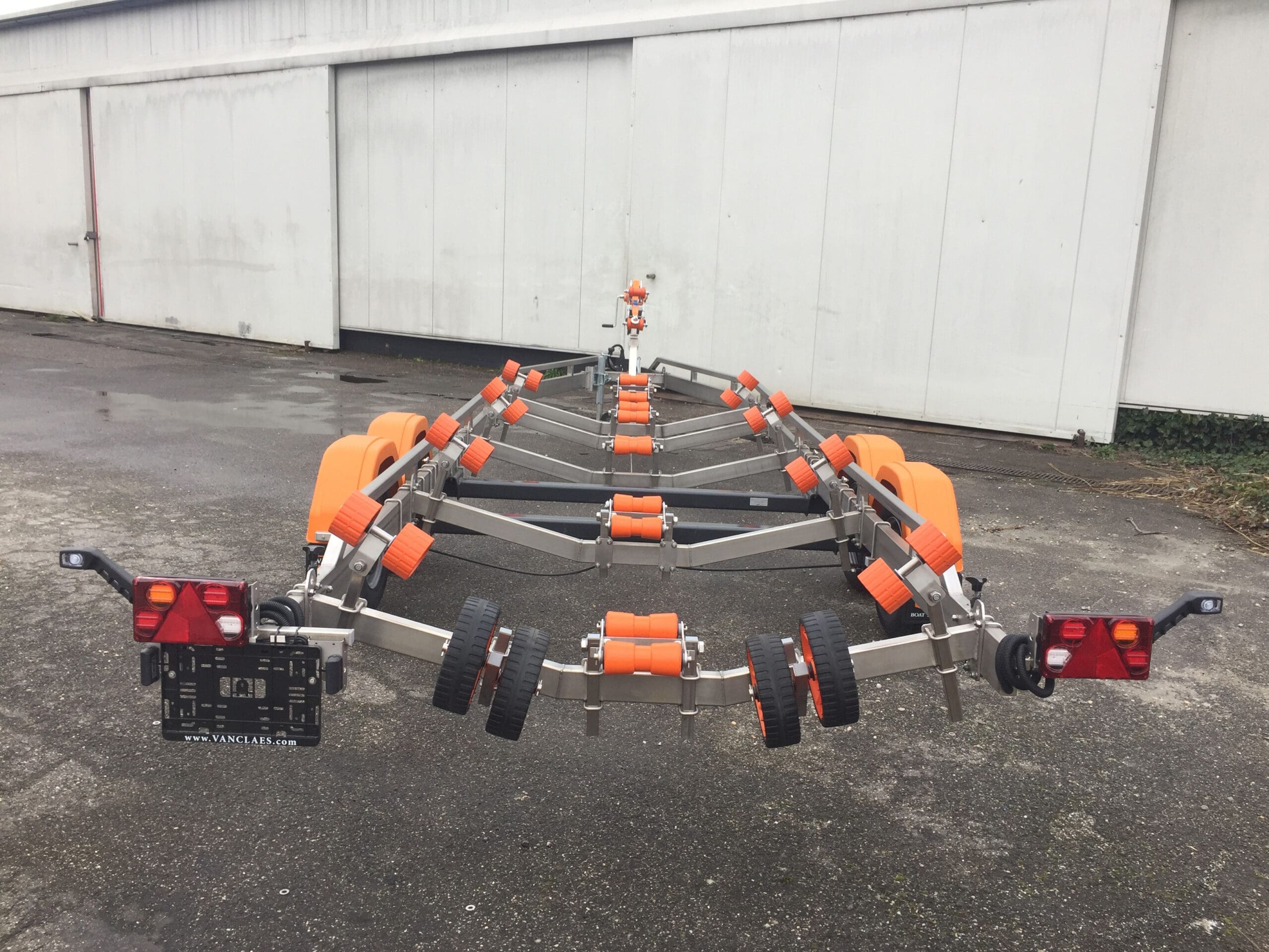 Durch die Verwendung von Edelstahl statt feuerverzinkten Stahls haben die Vanclaes Anhänger den Vorteil, dass sie mit einem oft noch stärkeren und robusteren Fahrgestell viel leichter sind. So, neben den enormen qualitativen und ästhetischen Vorteilen von dieses viel luxuriöseren und schöneren Materiale, bedeutet das auch eine Gewichtsersparnis von +/- 25%, was zu einer höheren Tragfähigkeit und mehr Möglichkeiten für die Anwendung von feiner und praktischer Optionen führt, die Sie bei fahren und auf der Slipanlage helfen.