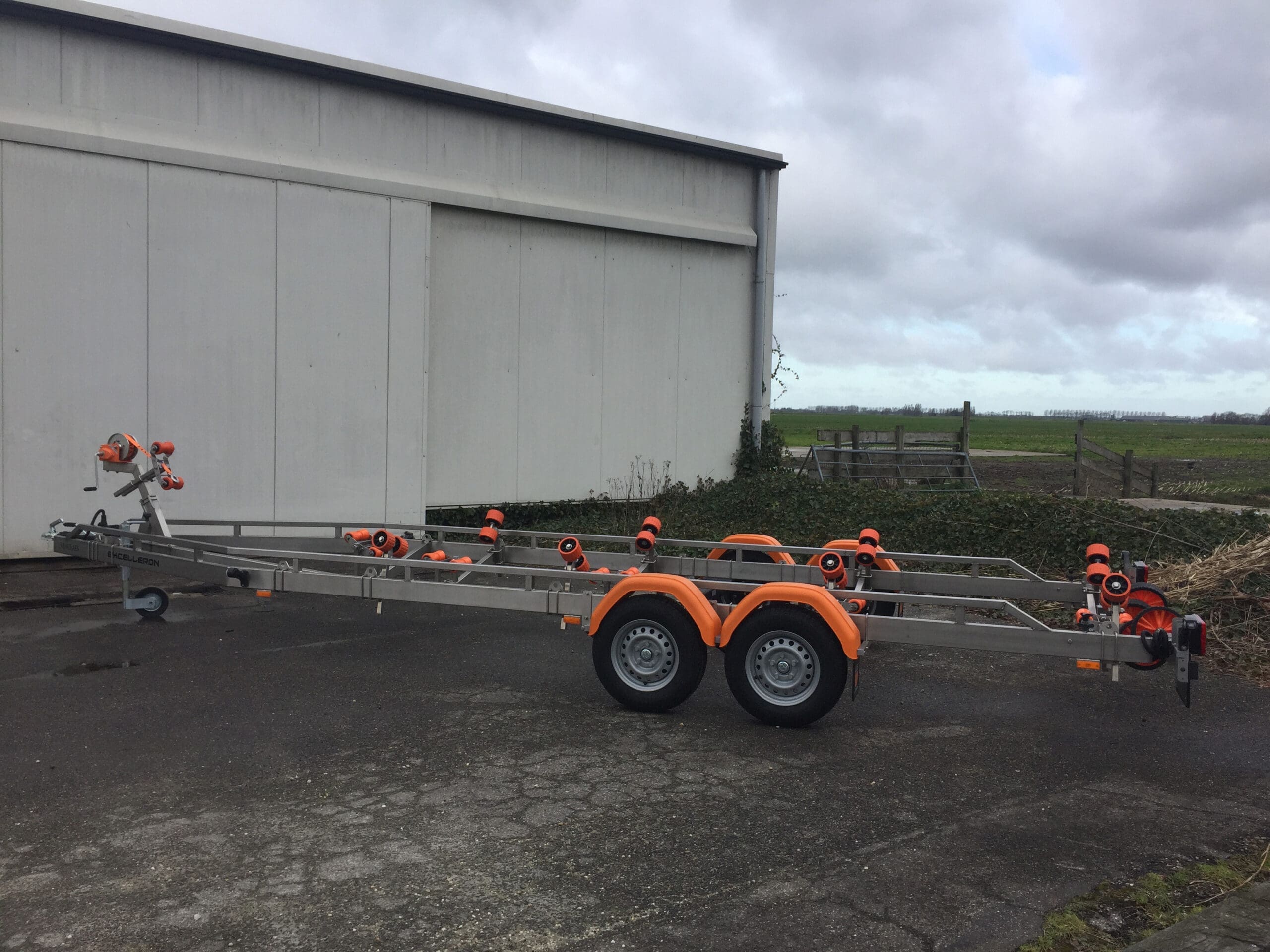 Die Windenstand und die Bugstütze können einfach in Länge und Höhe verstellt werden. Die Kiel- und Kim-Rollen, auf denen sich Ihr Boot befindet, können auch in der Höhe und / oder in Längsrichtung bewegt werden. Die automatisch gebremste Luxus-Sicherheitshandwinde ist serienmäßig mit einem soliden Windengurt ausgestattet.