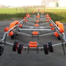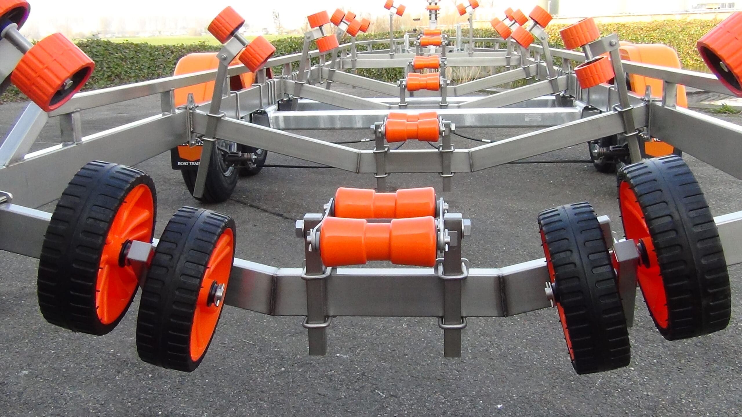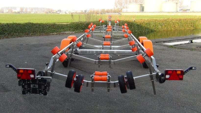 Durch die Verwendung von Edelstahl statt feuerverzinkten Stahls haben die Vanclaes Anhänger den Vorteil, dass sie mit einem oft noch stärkeren und robusteren Fahrgestell viel leichter sind. So, neben den enormen qualitativen und ästhetischen Vorteilen von dieses viel luxuriöseren und schöneren Materiale, bedeutet das auch eine Gewichtsersparnis von +/- 25%, was zu einer höheren Tragfähigkeit und mehr Möglichkeiten für die Anwendung von feiner und praktischer Optionen führt, die Sie bei fahren und auf der Slipanlage helfen.