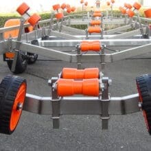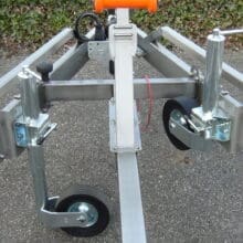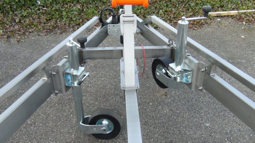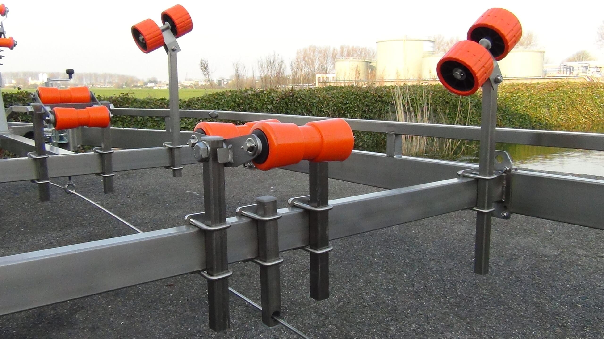 Die Windenstand und die Bugstütze können einfach in Länge und Höhe verstellt werden. Die Kiel- und Kim-Rollen, auf denen sich Ihr Boot befindet, können auch in der Höhe und / oder in Längsrichtung bewegt werden. Die automatisch gebremste Luxus-Sicherheitshandwinde ist serienmäßig mit einem soliden Windengurt ausgestattet.
