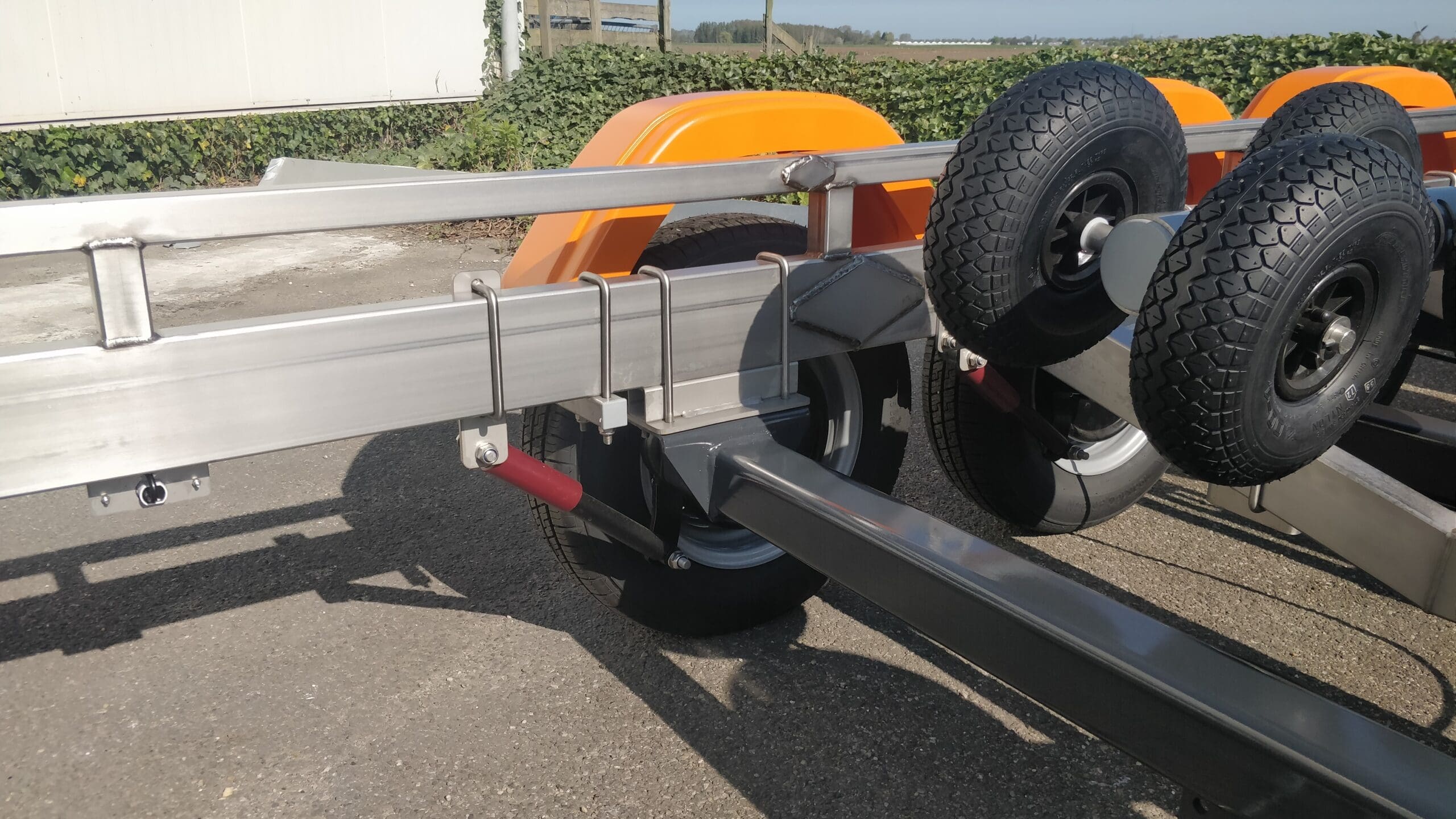 Durch die Verwendung von Edelstahl statt feuerverzinkten Stahls haben die Vanclaes Anhänger den Vorteil, dass sie mit einem oft noch stärkeren und robusteren Fahrgestell viel leichter sind. So, neben den enormen qualitativen und ästhetischen Vorteilen von dieses viel luxuriöseren und schöneren Materiale, bedeutet das auch eine Gewichtsersparnis von +/- 25%, was zu einer höheren Tragfähigkeit und mehr Möglichkeiten für die Anwendung von feiner und praktischer Optionen führt, die Sie bei fahren und auf der Slipanlage helfen.