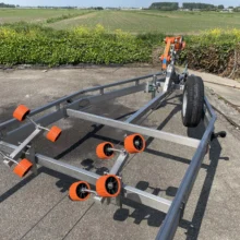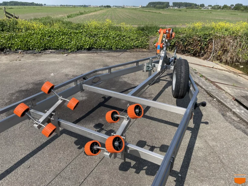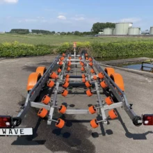 Die Windenstand und die Bugstütze können einfach in Länge und Höhe verstellt werden. Die Wave-Rollen, auf denen sich Ihr Boot befindet, können auch in der Höhe und / oder in Längsrichtung bewegt werden. Die automatisch gebremste Luxus-Sicherheitshandwinde ist serienmäßig mit einem soliden Windengurt ausgestattet.