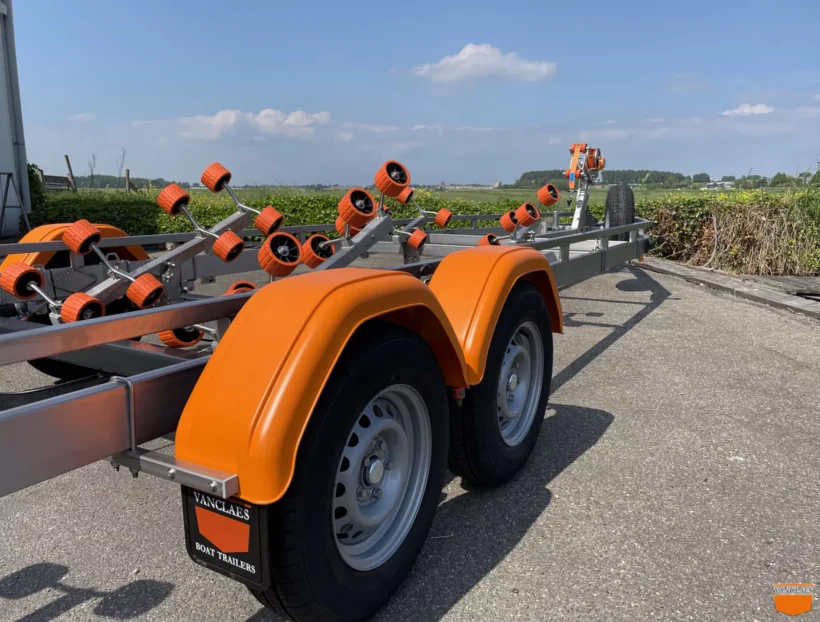 Durch die Verwendung von Edelstahl statt feuerverzinkten Stahls haben die Vanclaes Anhänger den Vorteil, dass sie mit einem oft noch stärkeren und robusteren Fahrgestell viel leichter sind. So, neben den enormen qualitativen und ästhetischen Vorteilen von dieses viel luxuriöseren und schöneren Materiale, bedeutet das auch eine Gewichtsersparnis von +/- 25%, was zu einer höheren Tragfähigkeit und mehr Möglichkeiten für die Anwendung von feiner und praktischer Optionen führt, die Sie bei fahren und auf der Slipanlage helfen.