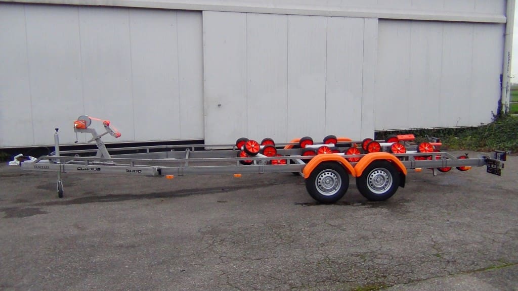 Der Vanclaes Gladius gebremste Bootsanhänger ist für Segelboote mit Hub- oder Schwertkiel geeignet.