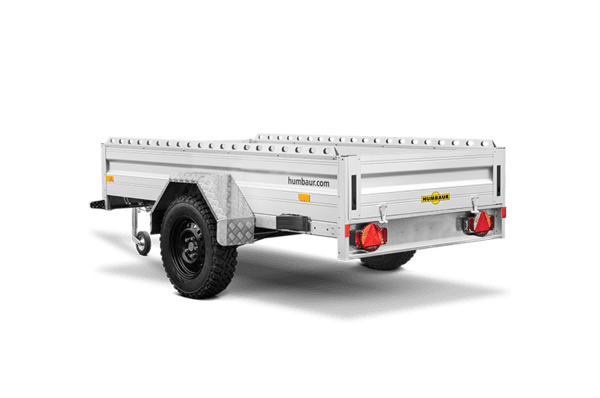 Sicher transportieren abseits der Straße: Offroadreifen sorgen im Gelände für Halt und erhöhen die Geländegängigkeit des Anhängers. Die seitliche Reling ermöglicht eine flexiblere Ladungssicherung und kann zur Fixierung von Netz oder Plane verwendet werden. Besonders widerstandsfähige Kotflügel aus Aluminiumriffelblech geben dem Anhänger nicht nur optisch das gewisse Etwas, sondern sorgen auch für den besten Schutz.
