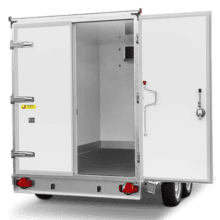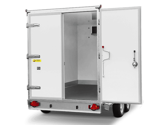 Die Kühlanhänger der Modellreihe HGK Deluxe Tandem bieten alles, was für den sicheren Transport gekühlter Waren notwendig ist: die Kühlzelle ist aufgebaut aus 60 mm starken PurFerro-Sandwich-Paneelen mit einem Kern aus geschäumten Polyurethan mit einer beidseitigen Beschichtung aus verzinktem und pulverbeschichtetem Stahlblech. Der 65 mm starke Isolierboden ist mit einem Antirutschbelag ausgestattet, der für sicheres Be- und Entladen sorgt und durch den höheren Reibungswiderstand auch bei der Ladungssicherung seinen Beitrag leistet.