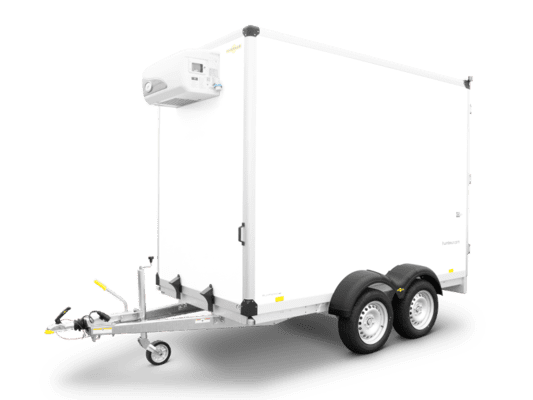 Der Tandem-Sandwichkofferanhänger für den gekühlten Transport Ihrer Ware. Der Rahmen und das Fahrwerk sind aus feuerverzinktem Stahl gefertigt und verleihen dem Sandwichkoffer eine lange Lebensdauer.