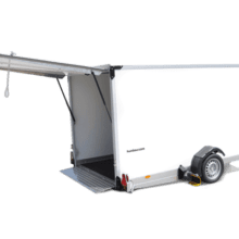 Der clevere Kofferanhänger mit intelligenter Absenkmechanik. Die Ladefläche kommt Ihnen beim Be- und Entladen entgegen. Es entsteht ein flacher Auffahrwinkel von nur 4 bis 6 Grad. Mit der integrierten Auffahrklappe und nach oben öffnender Heckklappe ist dieser Anhänger der perfekte Partner für bequemes Verladen. Ein robuster, rutschhemmender Boden und stabile Seitenwände mit GFK-Beschichtung sorgen für Langlebigkeit. Mit einer optionalen Wippe perfekt zum Transport von Motorrädern geeignet.