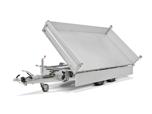 Der Dreiseitenkipper HTK überzeugt nicht nur durch unsere gewohnt hohen Qualitätsansprüche. Er ist mit einer praktischen Handpumpe ausgestattet, die Sie bei Bedarf auch jederzeit durch eine elektrische Hydraulikpumpe ersetzen können. Ab einem zulässigen Gesamtgewicht von 3.000 Kilogramm ist die Elektro- und Handpumpe serienmäßig im Anhänger verbaut. So wird das Abkippen Ihrer Ladeguts nicht mehr zur Herausforderung, sondern zum Kinderspiel.