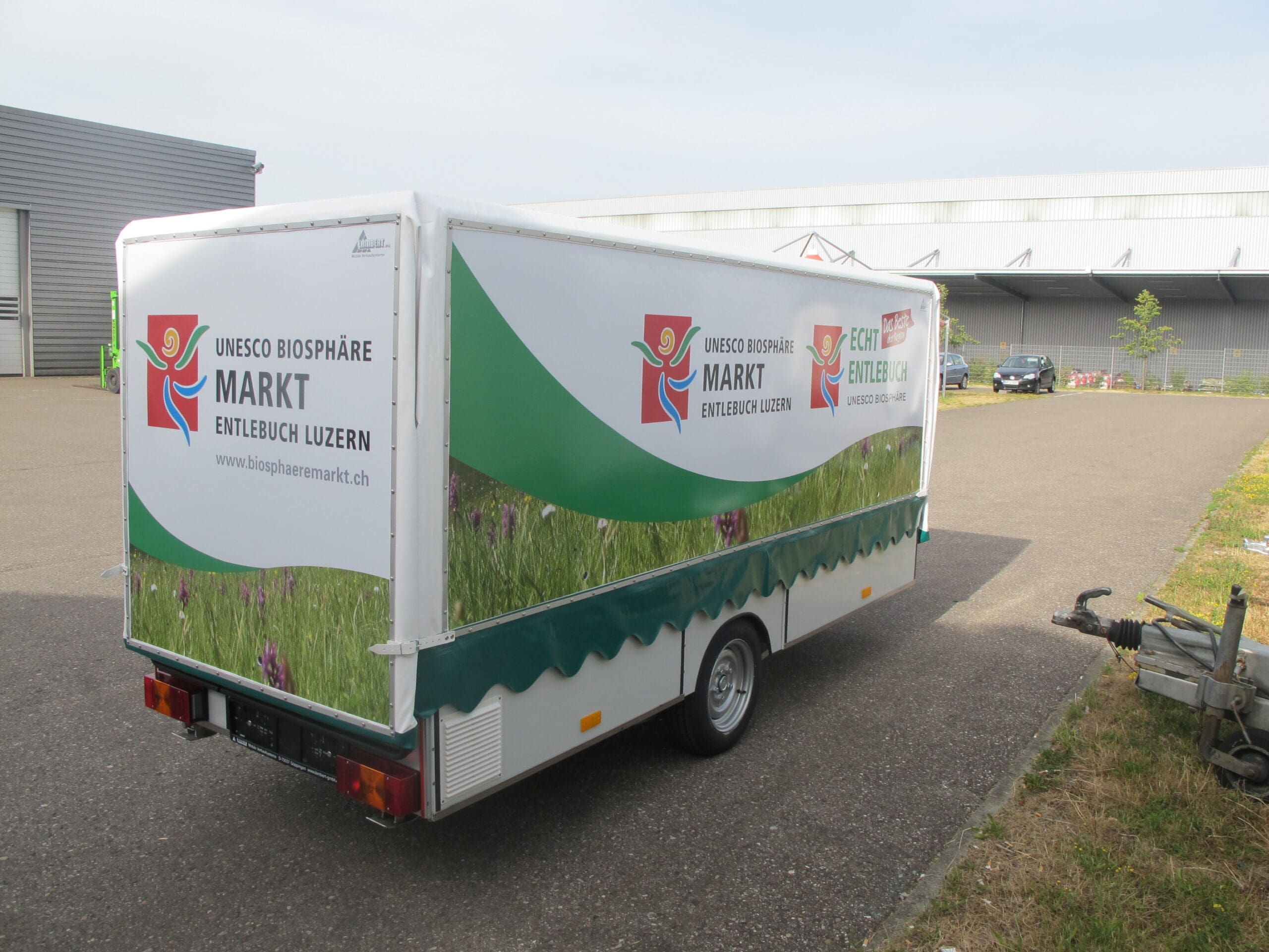- Klassischer Marktanhänger mit hydraulischem Hubdach