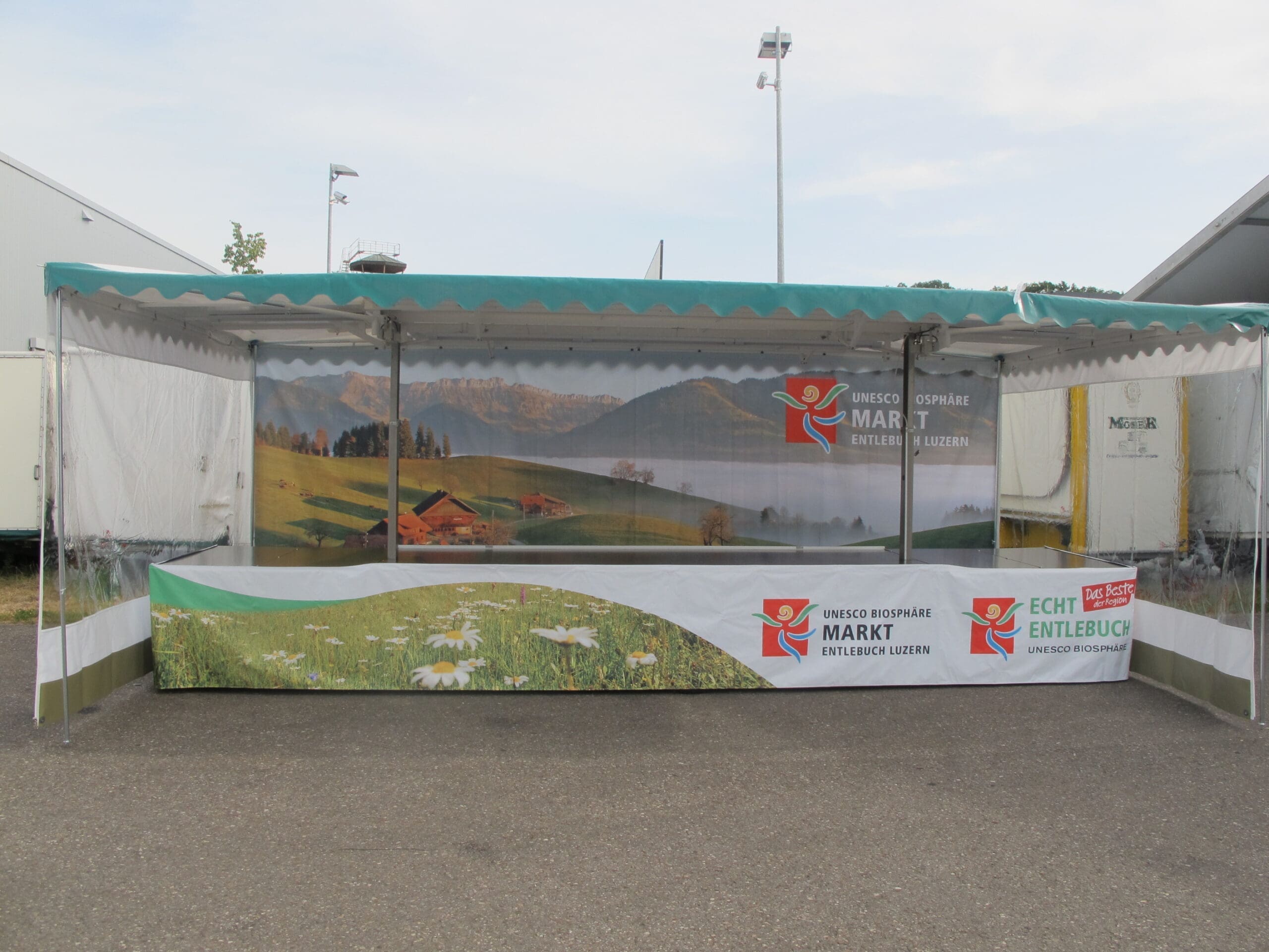 - Verbindung von Dach und Klappen, sowie Ecken aus hochwertigem PVC-Planenmaterial gewährleisten absolute Dichtheit, umlaufender Volant mit Ösenband