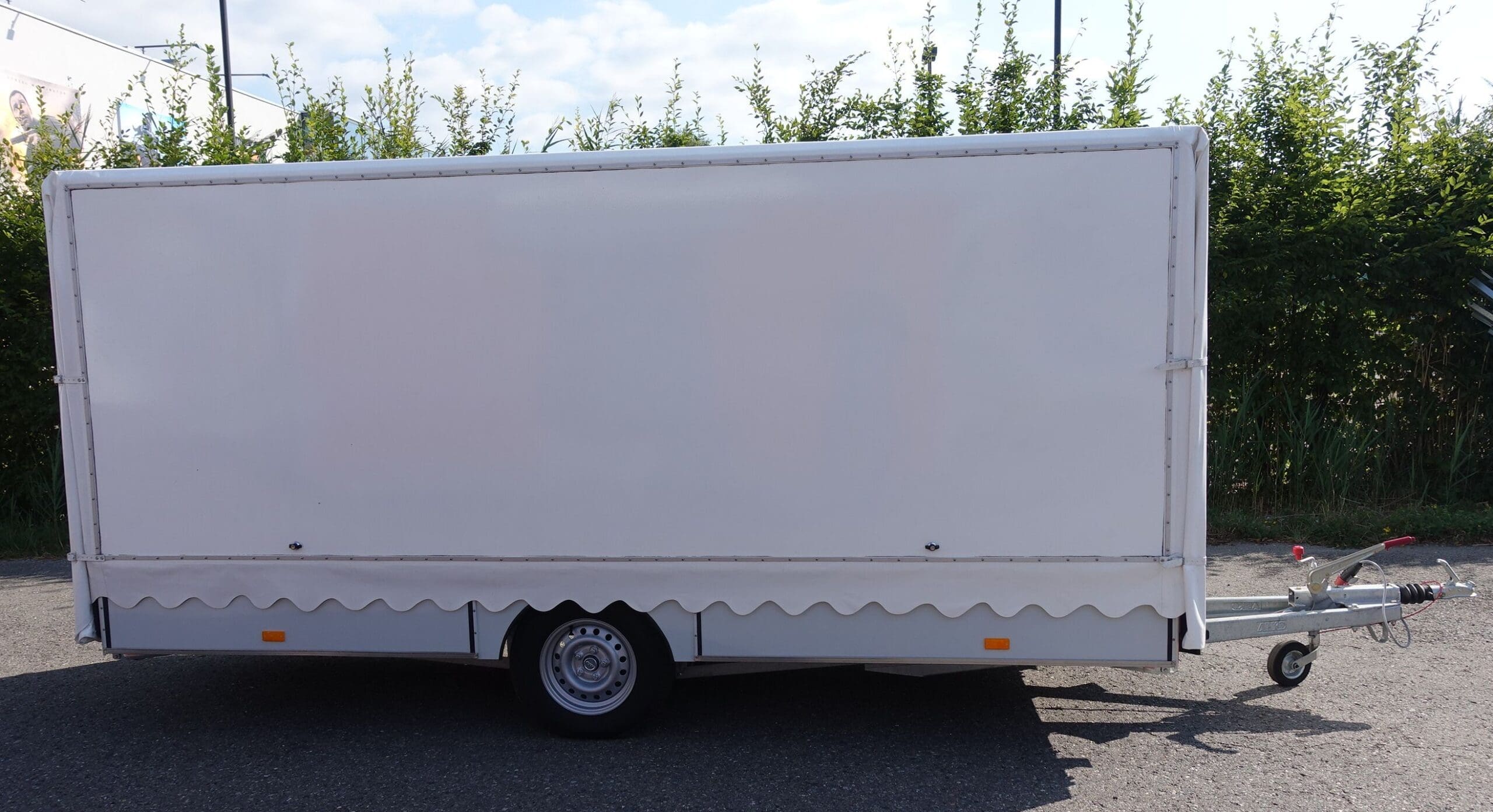 Unsere Verkaufsanhänger der Typen 400 und 450 mit einer festen Höhe von 220 cm bieten seit Jahren verlässliche Funktionalität im anspruchsvollen Marktalltag.