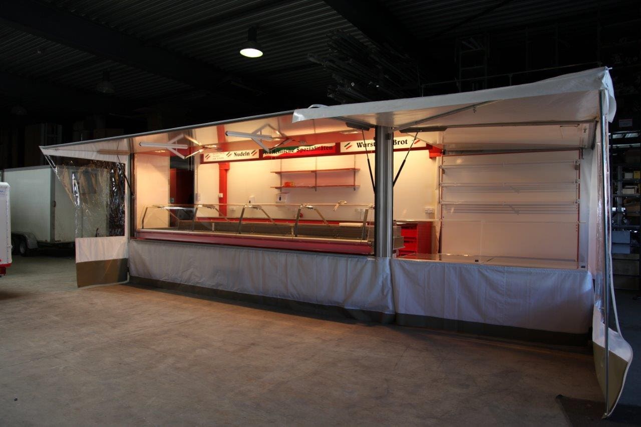 Lambert/Wenk-Marktanhänger begeistern immer wieder. Der neue Typ 600 ist als begeh- und absenkbarer Anhänger ein wahres Raumwunder. Die feste Rückwand bietet zum einen eine erweiterte Fläche zur Warenpräsentation und Bevorratung an. Zum anderen stehen Sie geschützt im Innern des Wagens. Die Absenkung mit geringen 20-22cm über normalem Boden ist äusserst benutzerfreundlich. Auf Wunsch mit Fussbodenheizung ausrüstbar. Ausstattungen und Einrichtungen aller Art werden Sie begeistern!