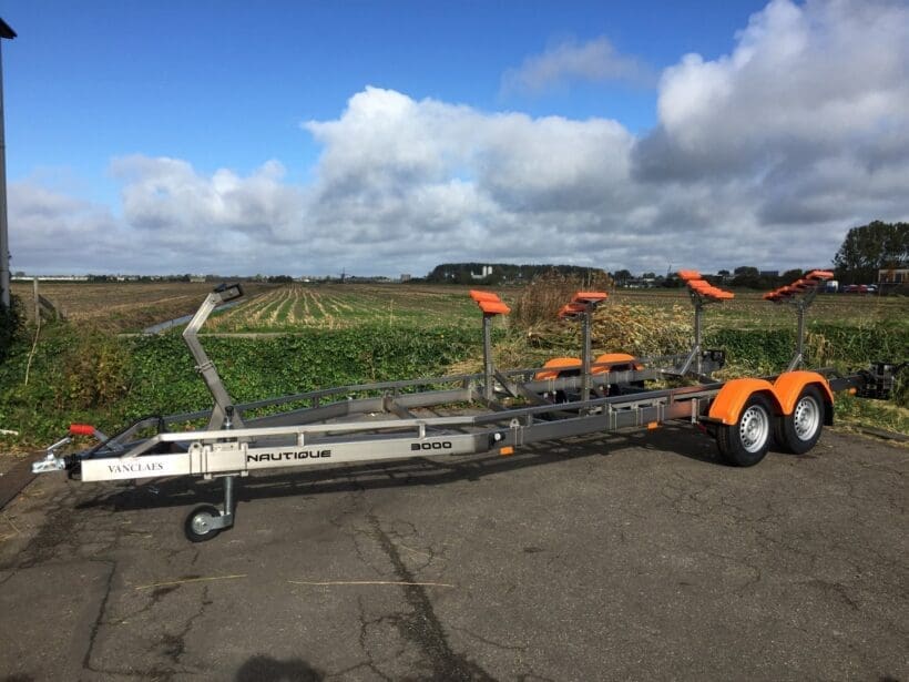 Mit dem Vanclaes Nautique profitieren Sie von einem gebremsten Bootsanhänger, der maximale Sicherheit und Stabilität auf jeder Fahrt gewährleistet.