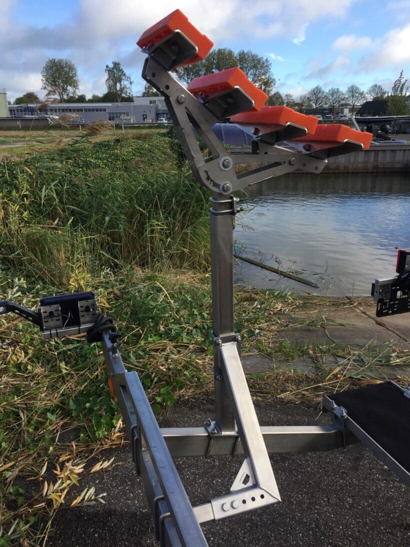 Die Vanclaes Schiffsrumpf Unterstützung ist von Edelstahl und zum Schutz des Bootes sind die Bootpads ausgestattet mit 100% kratz- und streifenfreie Kunststof.