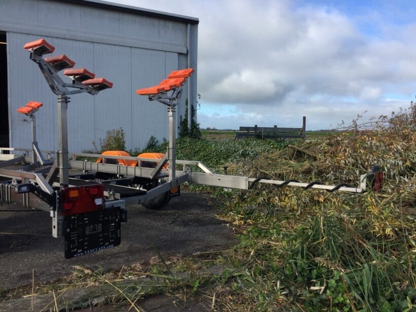 Dieser Bootsanhänger hat zwei Lichtleisten, die sich über eine Länge von einem Meter erstrecken lassen und mit einer 100% wasserdichten LED-Beleuchtung ausgestattet sind.