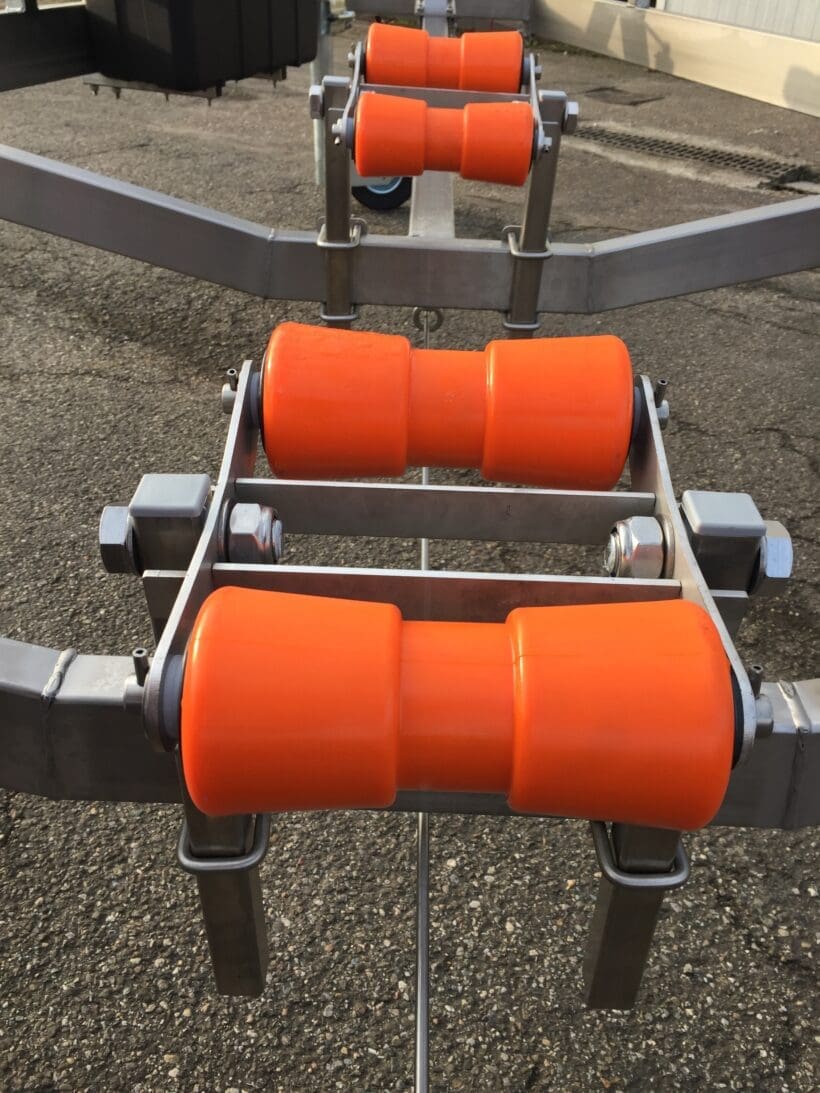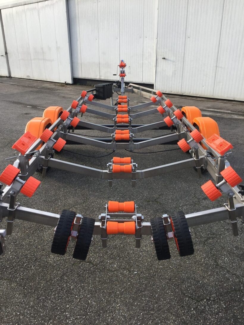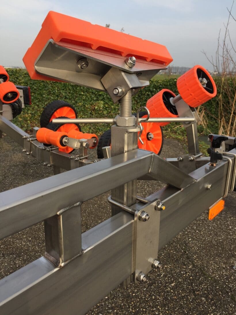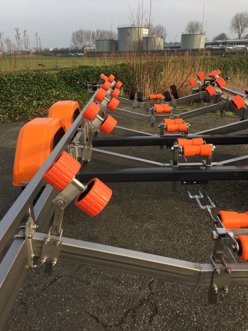 Durch die Verwendung von Edelstahl statt feuerverzinkten Stahls haben die Vanclaes Anhänger den Vorteil, dass sie mit einem oft noch stärkeren und robusteren Fahrgestell viel leichter sind. So, neben den enormen qualitativen und ästhetischen Vorteilen von dieses viel luxuriöseren und schöneren Materiale, bedeutet das auch eine Gewichtsersparnis von +/- 25%, was zu einer höheren Tragfähigkeit und mehr Möglichkeiten für die Anwendung von feiner und praktischer Optionen führt, die Sie bei fahren und auf der Slipanlage helfen.
