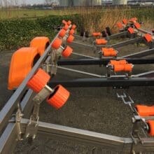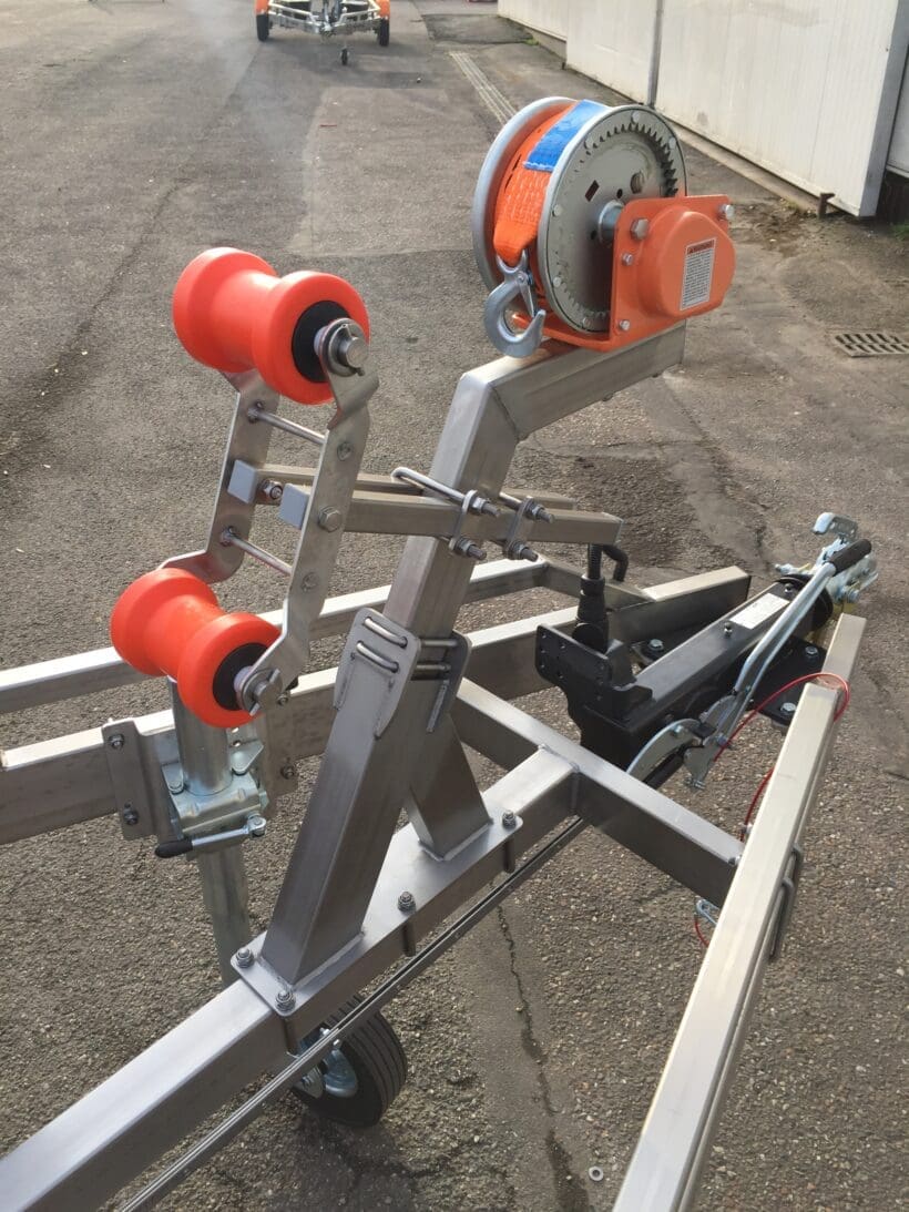 Die Windenstand und die Bugstütze können einfach in Länge und Höhe verstellt werden. Die Kiel- und Kim-Rollen, auf denen sich Ihr Boot befindet, können auch in der Höhe und / oder in Längsrichtung bewegt werden. Die automatisch gebremste Luxus-Sicherheitshandwinde ist serienmäßig mit einem soliden Windengurt ausgestattet.