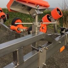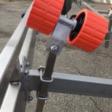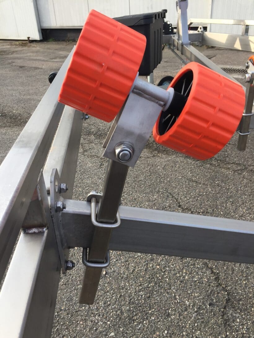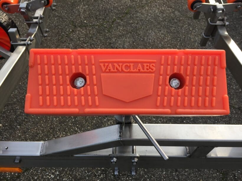 Alle Vanclaes Navis-Modelle sind standardmäßig mit einer Zentriervorrichtung mit kratz- und streifenfreien Polyurethanschaumrädern ausgestattet. Für den sicheren Transport sind am Heck des Anhängers zwei einstellbare Spindelstützen angebracht.
