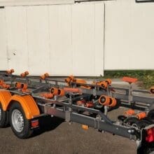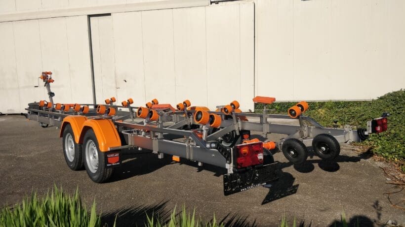Der Vanclaes Navis gebremste Bootsanhänger ist für Schaluppen und Tender mit durchgehendem Kiel geeignet.