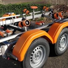 Die feuerverzinkte und anschließend anthrazit pulverbeschichtete gebremste Achslinie stammt von der deutschen Topmarke WAP und ist mit wasserfesten Edelstahl-Kompaktlagern ausgestattet. Wenn Sie sich für die Option Scheibenbremsen entscheiden, werden standardmäßig 100% wasserdichte Öllager geliefert. Darüber hinaus ist jeder gebremste Anhänger standardmäßig mit Stoßdämpfern an jeder Achslinie ausgestattet. Die Auflaufbremse ist ebenfalls serienmäßig, nach dem Feuerverzinken, anthrazit pulverbeschichtet.