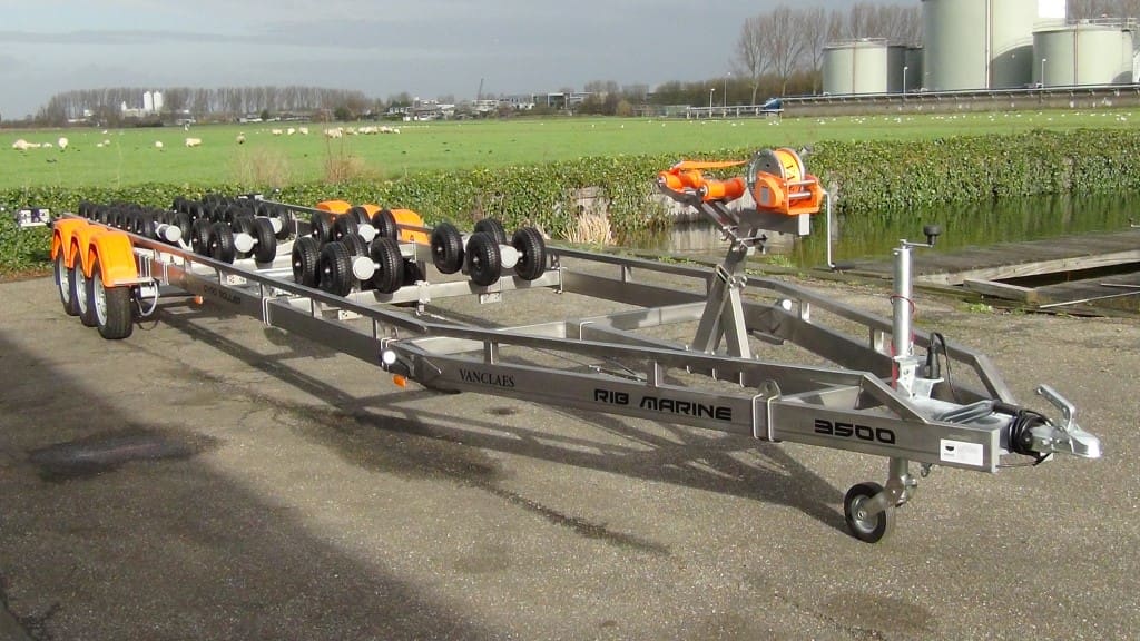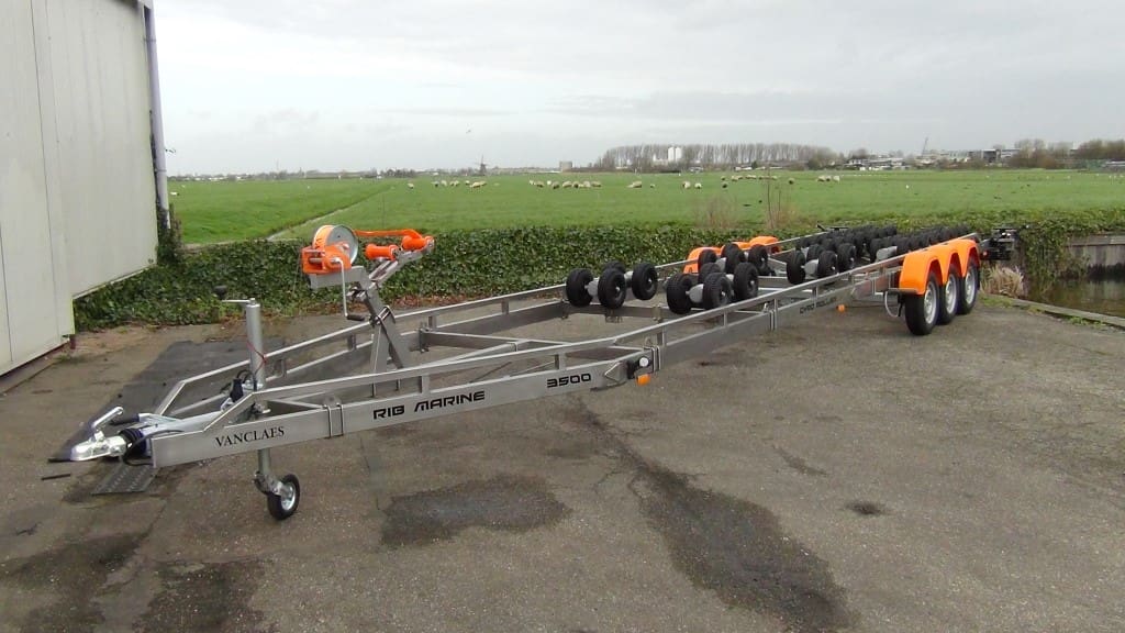 Der Vanclaes Rib Marine GYRO gebremste Bootsanhänger ist für Motorboote, Konsolenboote und Sportboote mit V-Rumpf oder Boote mit ein „Stufen Rumpf“ geeignet.