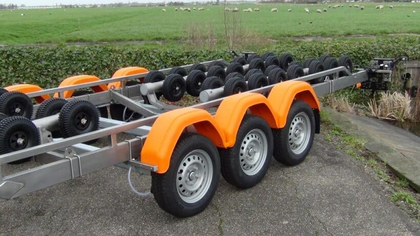Die Vanclaes GYRO-Rollen sind von Polyurethanschaum und ab dem 2750 kg schweren Anhänger ist der Anhänger serienmäßig mit Nylonreifen ausgestattet. Alle GYRO-Rollen sind 100% kratz- und streifenfrei.