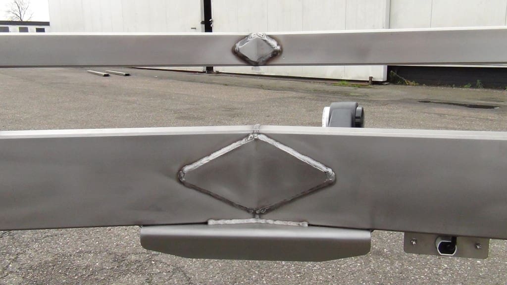 Durch die Verwendung von Edelstahl statt feuerverzinkten Stahls haben die Vanclaes Anhänger den Vorteil, dass sie mit einem oft noch stärkeren und robusteren Fahrgestell viel leichter sind. So, neben den enormen qualitativen und ästhetischen Vorteilen von dieses viel luxuriöseren und schöneren Materiale, bedeutet das auch eine Gewichtsersparnis von +/- 25%, was zu einer höheren Tragfähigkeit und mehr Möglichkeiten für die Anwendung von feiner und praktischer Optionen führt, die Sie bei fahren und auf der Slipanlage helfen.