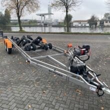 De Vanclaes Ski Power gebremste Bootsanhänger ist für Wasserski- en Wakeboardboote mit Gelenkwelle und möglicherweise zusätzlichen Flossen.