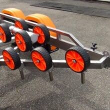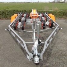 Die Vanclaes GYRO-Rollen sind von Polyurethanschaum und ab dem 2750 kg schweren Anhänger ist der Anhänger serienmäßig mit Nylonreifen ausgestattet. Alle GYRO-Rollen sind 100% kratz- und streifenfrei.