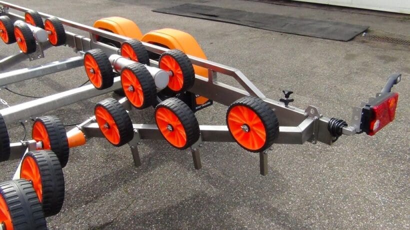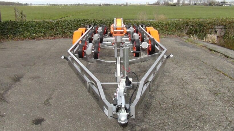 Durch die Verwendung von Edelstahl statt feuerverzinkten Stahls haben die Vanclaes Anhänger den Vorteil, dass sie mit einem oft noch stärkeren und robusteren Fahrgestell viel leichter sind. So, neben den enormen qualitativen und ästhetischen Vorteilen von dieses viel luxuriöseren und schöneren Materiale, bedeutet das auch eine Gewichtsersparnis von +/- 25%, was zu einer höheren Tragfähigkeit und mehr Möglichkeiten für die Anwendung von feiner und praktischer Optionen führt, die Sie bei fahren und auf der Slipanlage helfen.