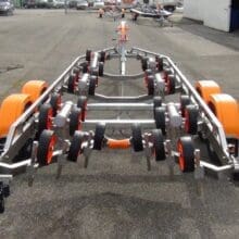 Speziell für Wasserski- en Wakeboardboote mit Gelenkwelle ist dieser Anhänger mit einem tiefen V-Rahmen ausgestattet, wodurch das Boot im Heck optimal abgestützt wird, aber auch genügend Platz für die Gelenkwelle vorhanden ist.