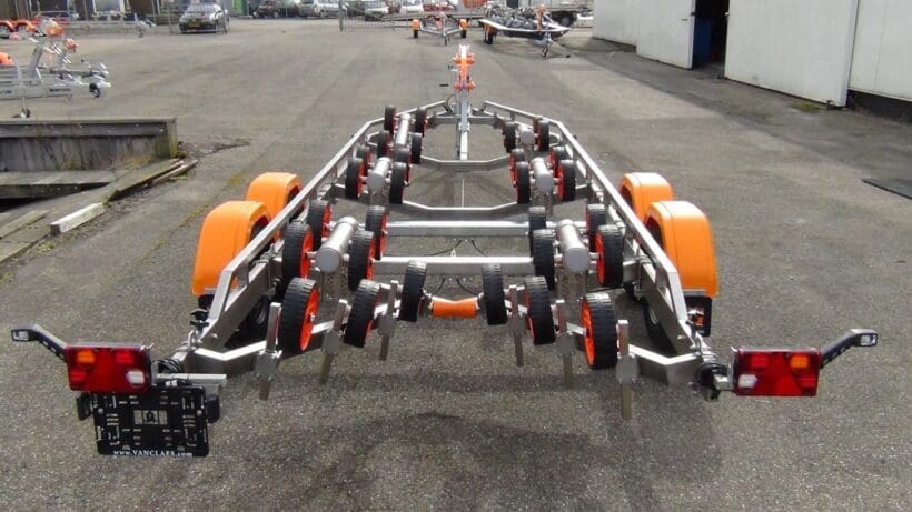 Durch die Verwendung von Edelstahl statt feuerverzinkten Stahls haben die Vanclaes Anhänger den Vorteil, dass sie mit einem oft noch stärkeren und robusteren Fahrgestell viel leichter sind. So, neben den enormen qualitativen und ästhetischen Vorteilen von dieses viel luxuriöseren und schöneren Materiale, bedeutet das auch eine Gewichtsersparnis von +/- 25%, was zu einer höheren Tragfähigkeit und mehr Möglichkeiten für die Anwendung von feiner und praktischer Optionen führt, die Sie bei fahren und auf der Slipanlage helfen.