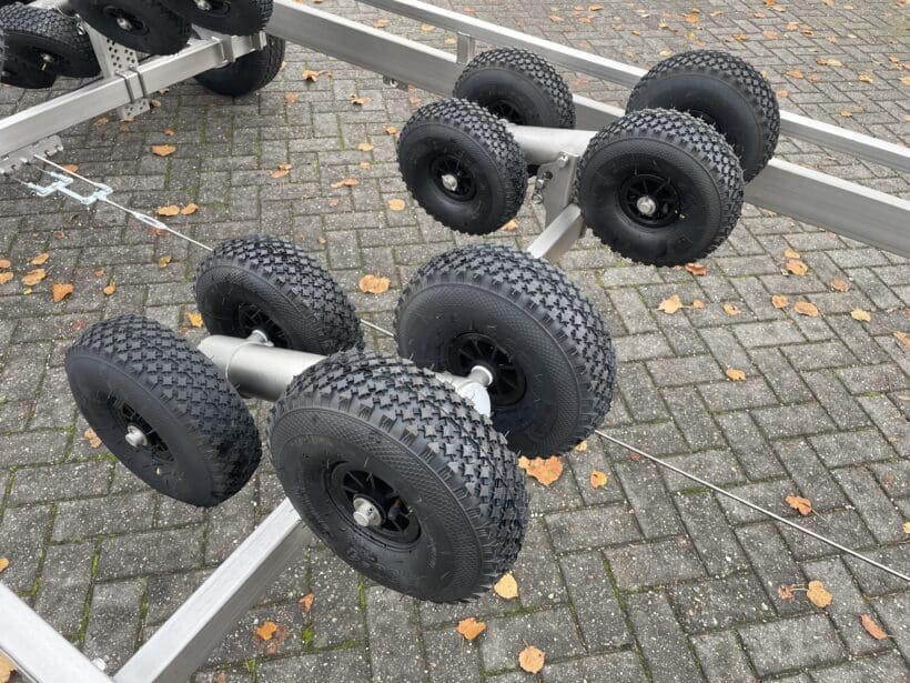 Die Vanclaes GYRO-Rollen sind von Polyurethanschaum und ab dem 2750 kg schweren Anhänger ist der Anhänger serienmäßig mit Nylonreifen ausgestattet. Alle GYRO-Rollen sind 100% kratz- und streifenfrei.