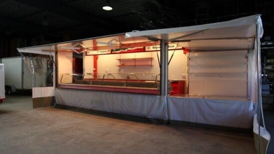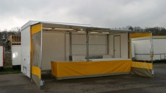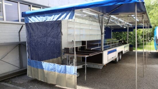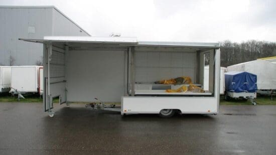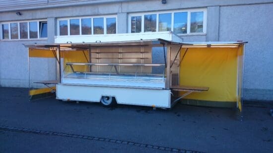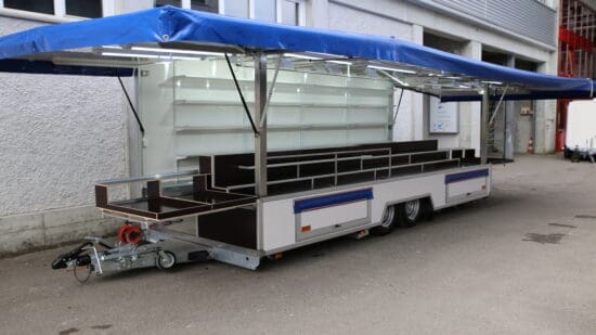 Lambert/Wenk-Marktanhänger begeistern immer wieder. Der neue Typ 600 ist als begeh- und absenkbarer Anhänger ein wahres Raumwunder. Die feste Rückwand bietet zum einen eine erweiterte Fläche zur Warenpräsentation und Bevorratung an. Zum anderen stehen Sie geschützt im Innern des Wagens. Die Absenkung mit geringen 20-22cm über normalem Boden ist äusserst benutzerfreundlich. Auf Wunsch mit Fussbodenheizung ausrüstbar. Ausstattungen und Einrichtungen aller Art werden Sie begeistern! -