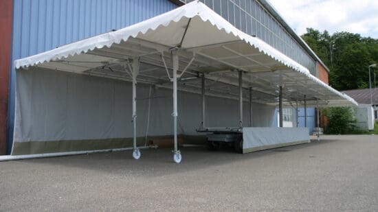 LVA – der superleichte Verkaufsanhänger Variables Dach mit geschütztem Kettenantrieb für die Dachverstellung. -